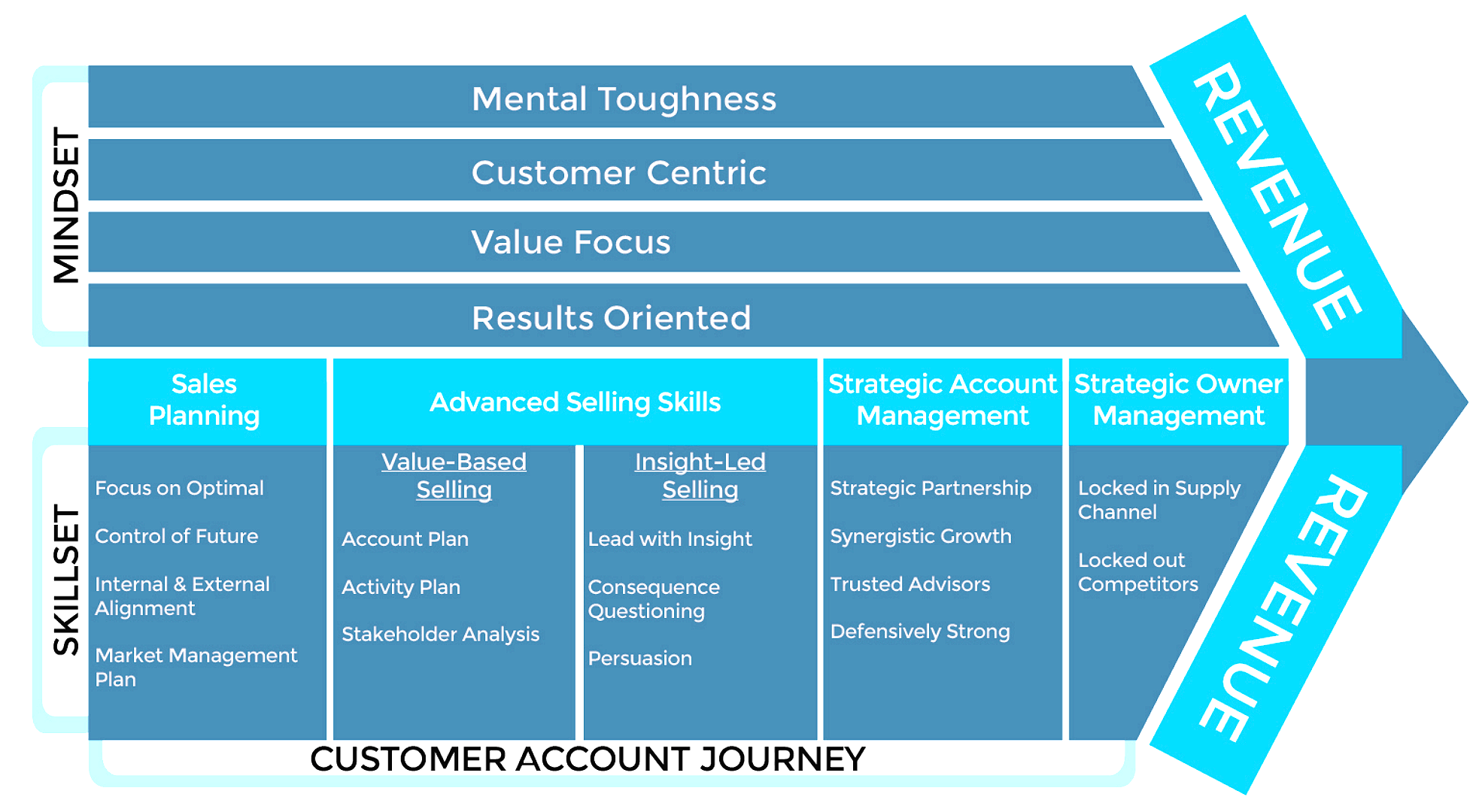 Executing on a strategy is often even harder than developing it in the first place. To ensure your strategy converts into tangible results, we work with your sales professionals on both mindsets and skillsets. We develop highly skilled sales people, with exceptional sales processes, with the mental toughness that keeps them in the right frame of mind to best leverage the skills and tools at their disposal.